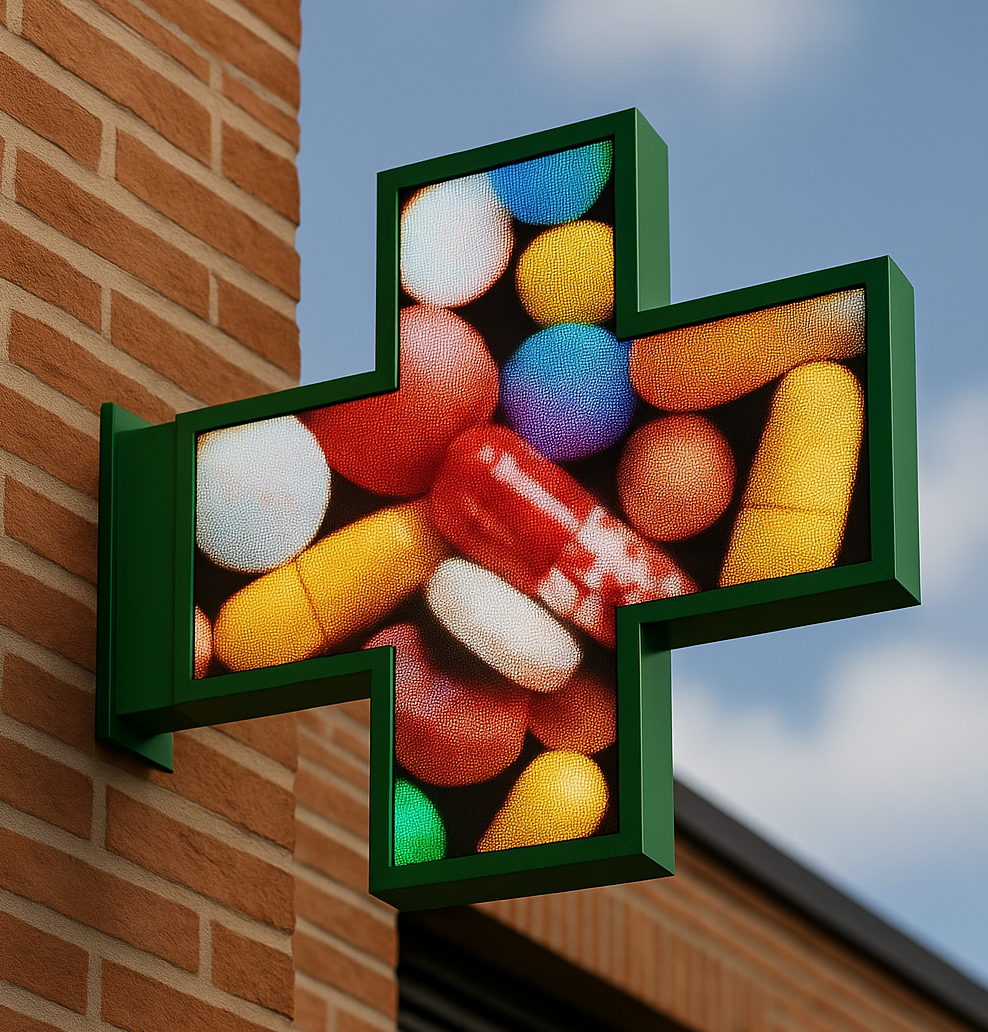 Nos croix de pharmacie LED Full Color offrent une visibilité exceptionnelle grâce à leur affichage en couleurs, permettant d’afficher images, animations et informations dynamiques.